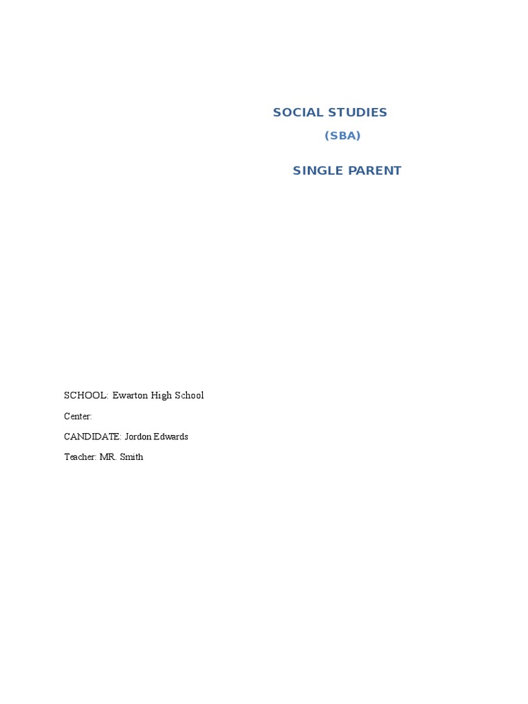 Social studies sba sample on single parent. SOCIAL STUDIES SBA SINGLE PARENT Candidate name. I therefore decided to choose the households by a process of random selection which will cater for the requirements mentioned. We aim to enable persons to practice a subject they might find challenging.