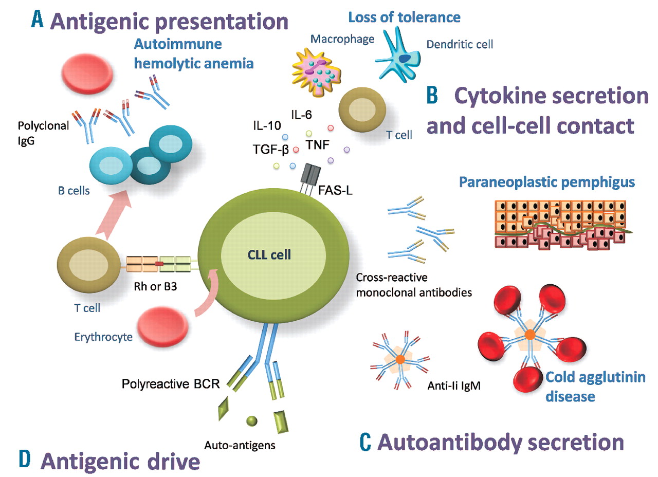 LGL leukemia and autoimmunity - the borderline between autoimmune disease and cancer is becoming blurred. An autoimmune hemolytic anemia should be considered as one contributing factor of severe anemia in a patient with acute myeloid leukemia. AIHA occurs in 11 of advanced stage CLL patients. Large granular lymphocyte LGL leukemia is a chronic hematological disease in which the diseased cells consist of clonal large mature T or NK cells. Autoimmune Diseases etiology Carrier State immunology Cytotoxicity Tests Immunologic Fibroblasts immunology Leukemia Experimental etiology. LGL leukemia and autoimmunity - the borderline between autoimmune disease and cancer is becoming blurred. Immune dysregulation a hallmark of chronic lymphocytic leukemia CLL manifests itself in three autoimmune diseases.