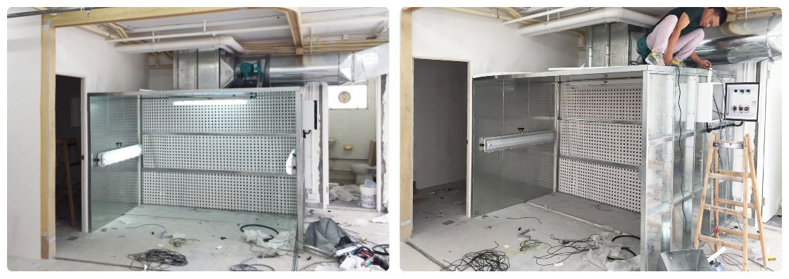 The air enters the working chamber unfiltered through an open face. Complete assembly drawings are provided this ensures a quick and easy installation of the spray booth by any semi-skilled labourer.