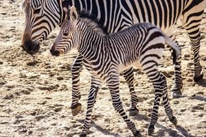 Now you know that a baby zebra is called a colt. Adult females are mares and male zebras are called stallions. At the age of two a young female can already lead offspring.